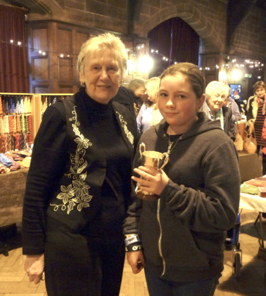 The altar frontal, commissioned by All Hallows to celebrate their 150th Anniversary was handed over to the vicar, Reverend Cannon Nicola Milford. The completed altar frontal was the result of 18 month’s work by our members. The project was lead by Gill Roberts, and is something of which we can all be proud. The photograph shows All Hallows Altar Cloth with co-Chair Kim Parkman on the left and Project Co-ordinator Gill Roberts on the right