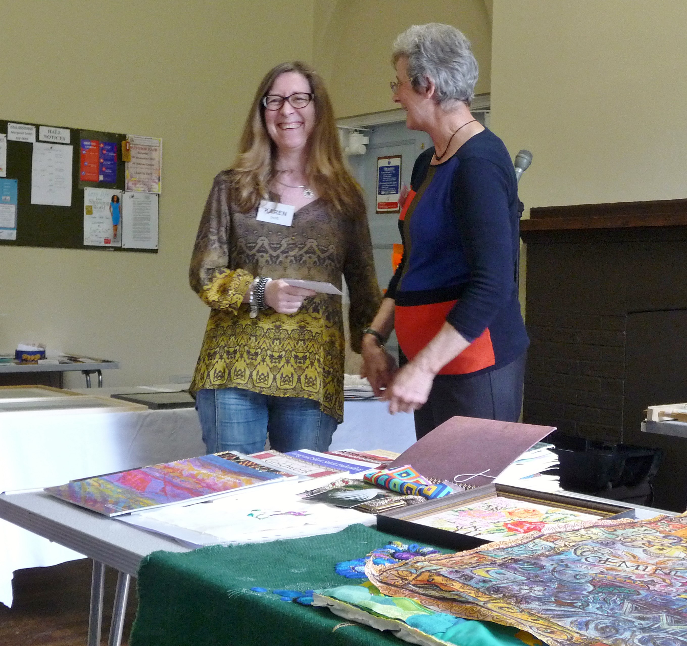 Karen Scott, MEG Joint Bursary winner 2015, receiving her cheque from Kim