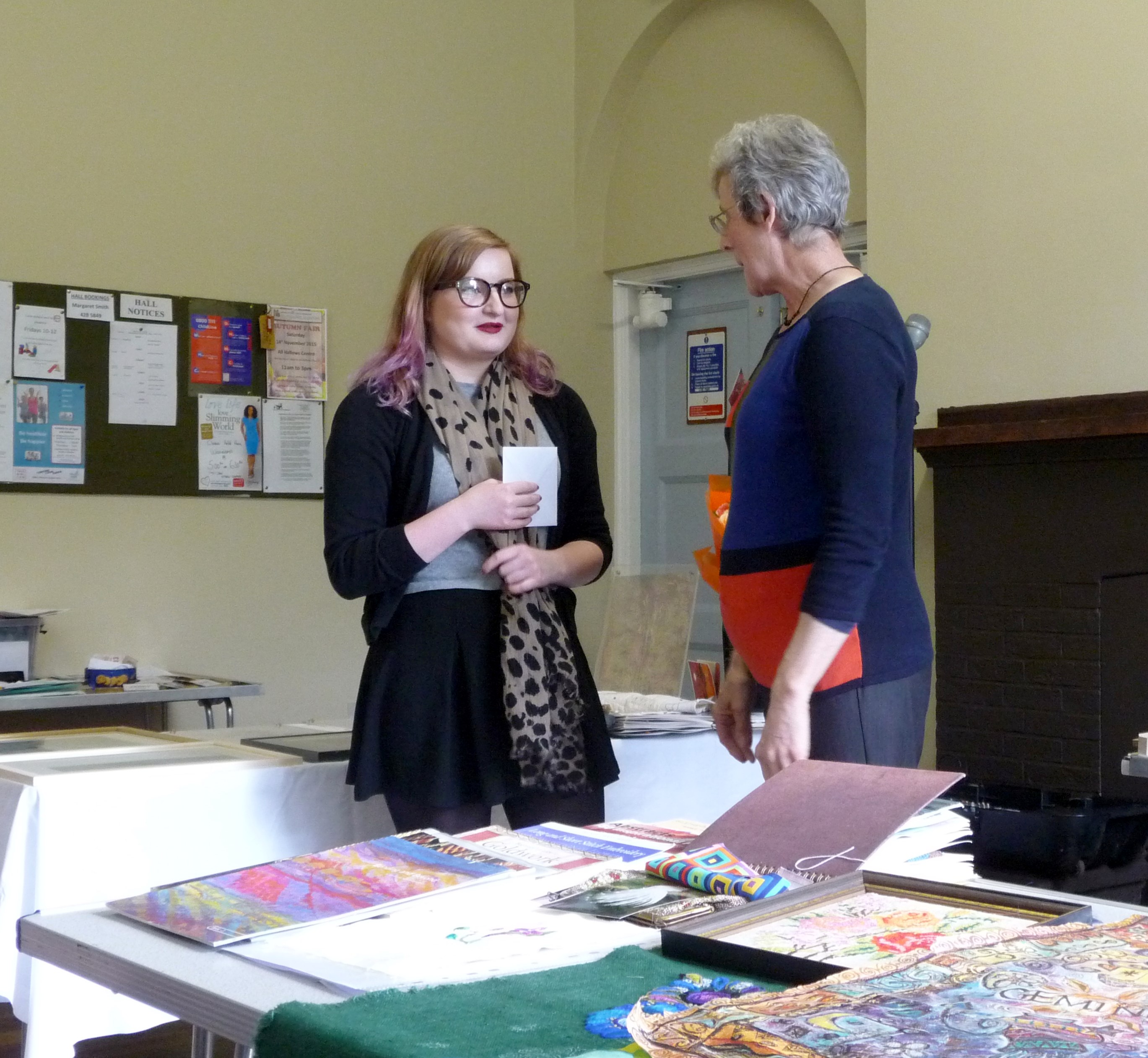 Niamh Conway, MEG Joint Bursary winner 2015, receiving her cheque from Kim
