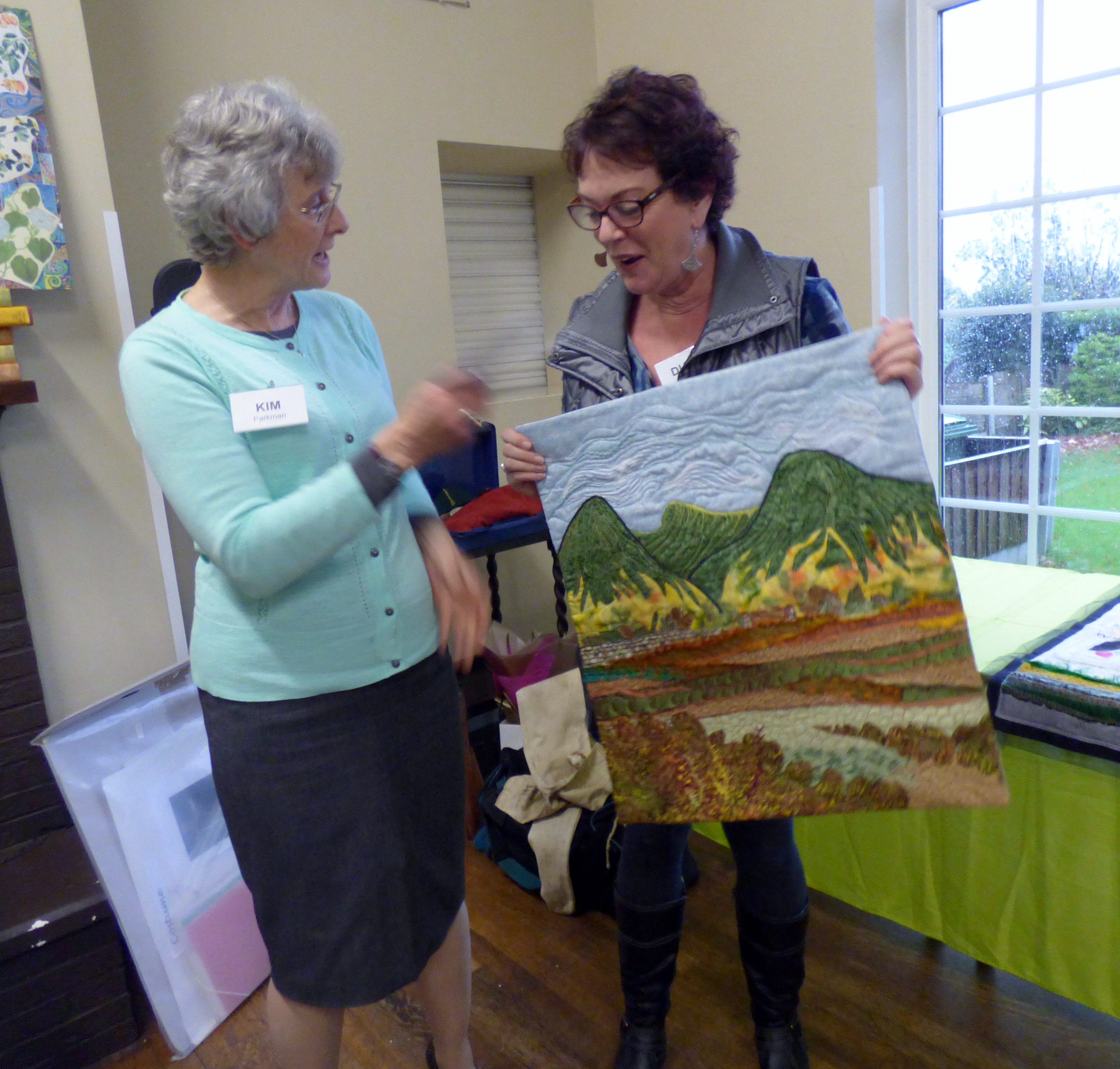 Diane Moore, First Prize Winner of 2017 Chair’s Challenge competition, theme “Memory Wall” with her winning embroidery