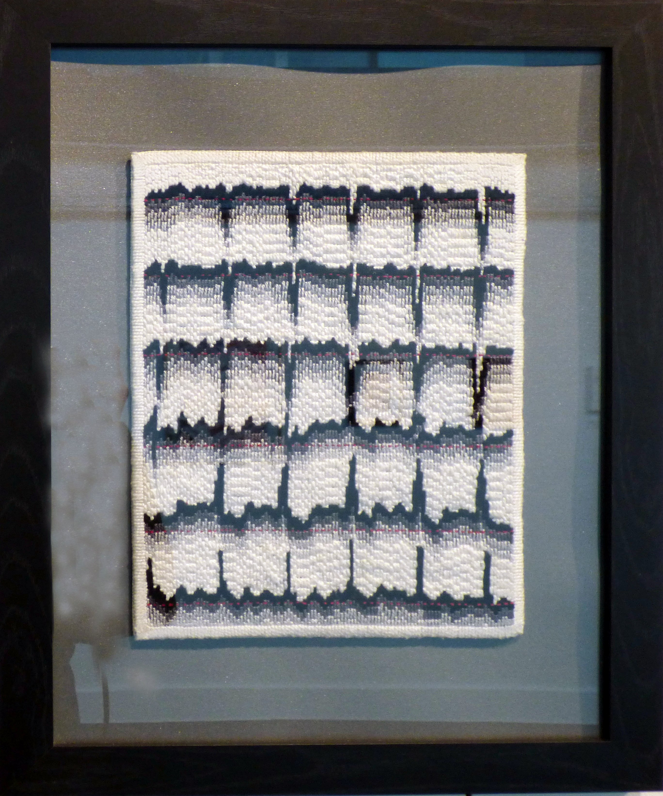 IN A HEARTBEAT by Karen Scott, Florentine stitch style canvas work embroidery in cotton thread. From The Heart exhibition, St Helens, Feb 2020