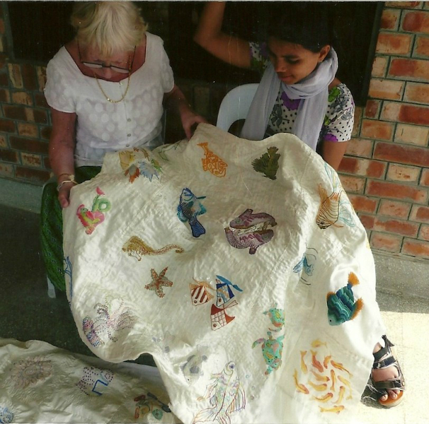 It started with seven suitcases of sewing equipment and a lot of hope… In 1990 Rubina Porter, a long-term member of our Guild, set off for Sreepur Village in rural Bangladesh to pass on her embroidery skills to the women and children at the local orphanage. Little did she think that she would be returning for her 32nd visit in 2012.