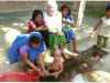 There is a photo of new mum age 14 with her 6 week old baby born on the street in Dhaka. She is now doing embroidery with the other mothers.You can also view our baby getting washed outside the baby house at Sreepur.