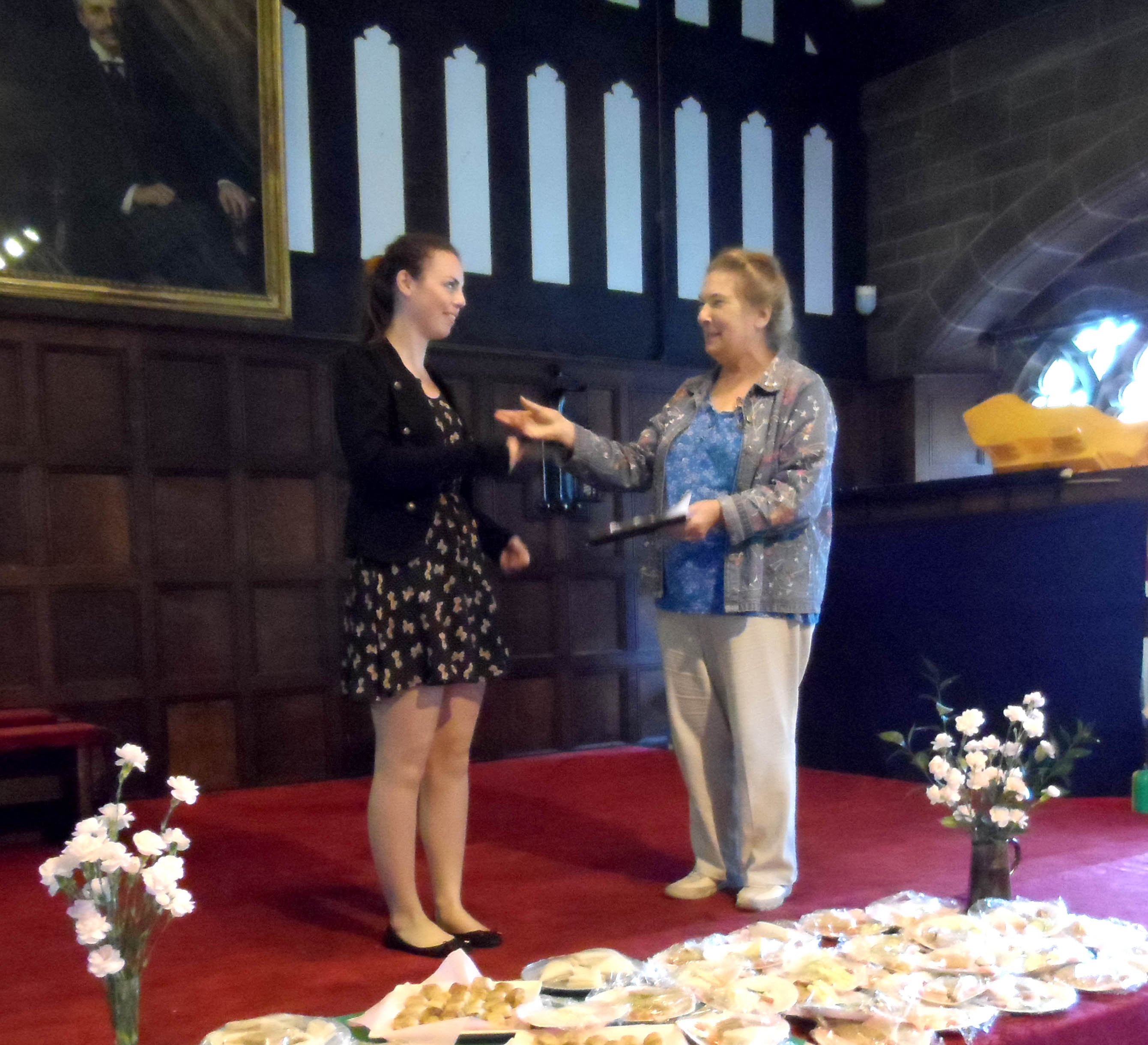 Vicky is presenting Hannah Roberts with her Bursary cheque
